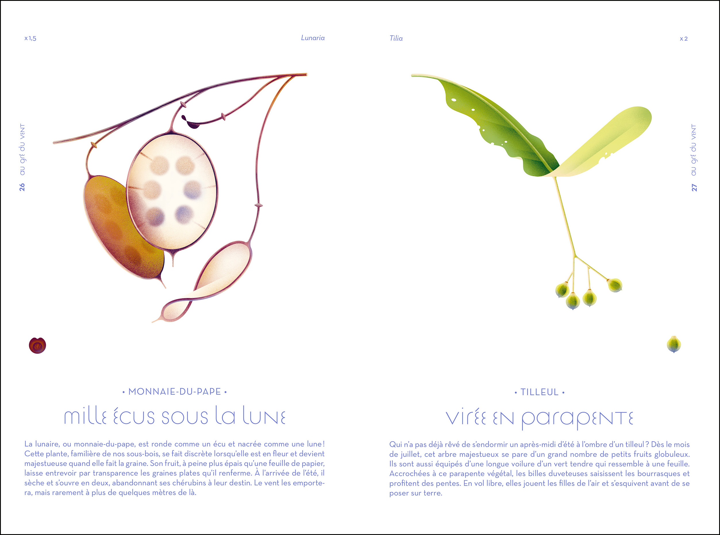 Cruschiform est une autrice illustratrice qui a grandi dans les Cévennes, entourée de cèdres et de châtaigniers. Cette présence du végétal l’a toujours ressourcée et l’a profondément inspirée. Il lui aura fallu des années pour se documenter, recenser et dessiner plus de 130 graines et nous en offrir un merveilleux panorama. Elle nous explique comment, au fur et à mesure des années, les plantes ont développé des stratagèmes pour assurer leur reproduction. À l’aide de leurs graines, chacune a su redoubler d’ingéniosité et trouver les qualités nécessaires à sa longévité. Toutes ces graines sont ici présentées selon leur système de dispersion. Nous découvrons, celles, microscopiques, qui se servent de la force du vent pour se propulser. D’autres utilisent les ruissellements de l’eau pour conquérir de nouveaux territoires. La noix de coco, par exemple, pourtant parmi les plus grosses graines au monde, flotte et navigue depuis la nuit des temps, laissant même planer le doute sur sa véritable origine. Certaines, explosent lors des fortes chaleurs pour propulser leurs graines. L’eucalyptus, arbre très résistant aux flammes, dégage néanmoins une essence inflammable et, lors d’un incendie, essaime des milliers de graines. En redoublant d’ingéniosité, certaines se servent de fourmis, d’oiseaux ou de mammifères pour cheminer. En Provence par exemple, les graines de buis dégagent une odeur sucrée pour inciter les fourmis à venir les transporter. D’autres arborent des couleurs éclatantes pour se faire repérer des oiseaux et profiter d’un beau voyage. Au fil des pages, les illustrations de Cruschiform viennent nous envoûter. Les couleurs sont vibrantes, magnétiques et captivantes. Les lignes claires et épurées, la présence de l’échelle et le nom scientifique de chaque graine, tout rappelle le travail de la planche naturaliste pour cet album imprimé au pied des Alpes italiennes, dans un soucieux respect de l’environnement. Dans ses textes, Cruschiform allie subtilement poésie et connaissance, humour et surprise. À chaque page, une information nous interpelle : on est surpris devant la graine de ricin, plus toxique que le cyanure. On est attendri devant la calebasse qui, pendant des décennies, a servi de saladier ou d’instrument de musique ; impressionné devant l’effrayante châtaigne d’eau aux allures diaboliques. Chaque graine est une découverte, chaque graine est une merveille. Après avoir refermé cette incroyable Odyssée, vous ne les regarderez plus de la même manière.