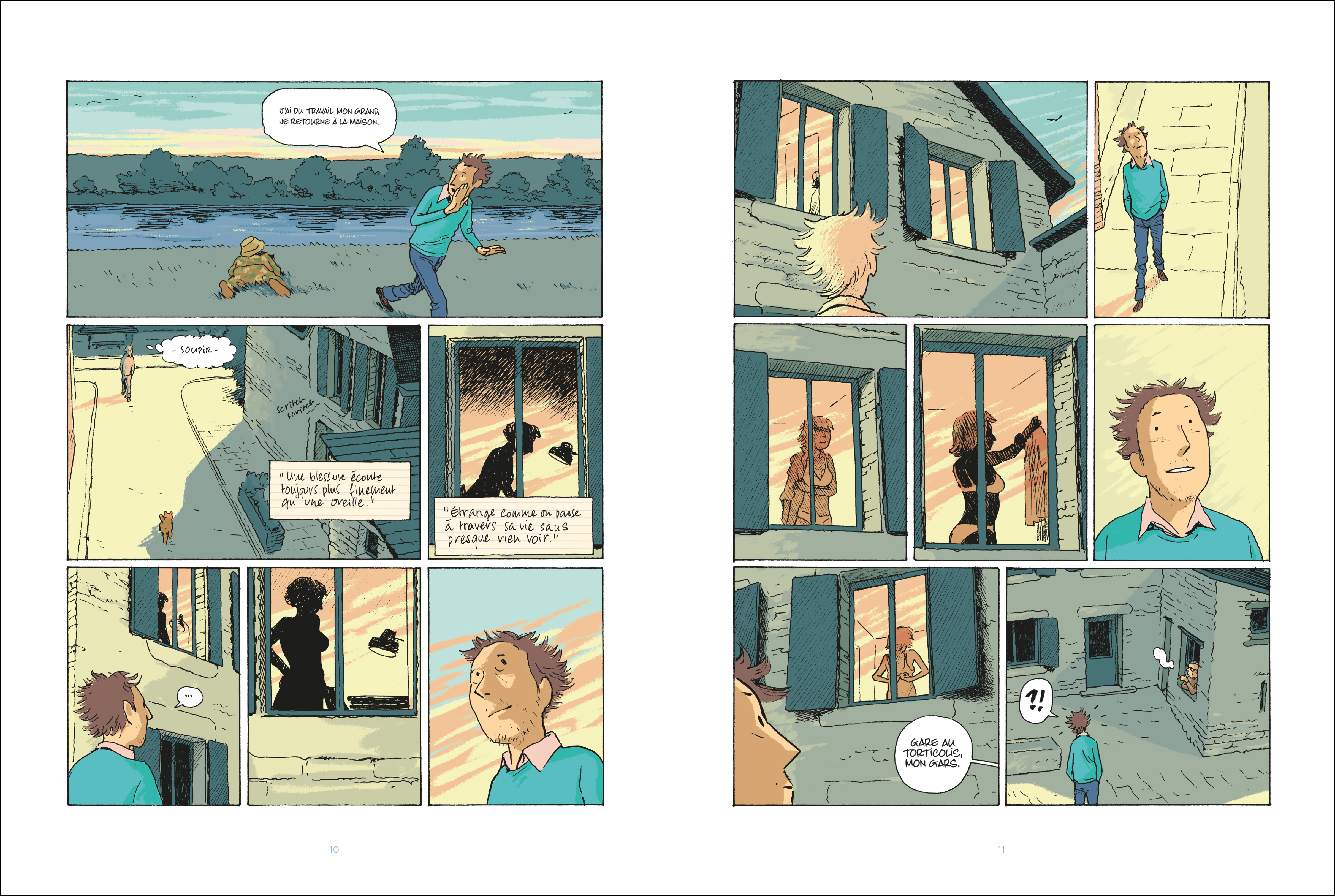 « Le monde commence au pied de mon nénuphar. » Dans sa mare, le crapaud se demande qui sont les humains qui vivent autour de lui. Aussi charge-t-il les animaux de les observer, de regarder leurs vies, leurs interrogations. Une vie humaine ou animale, c’est fragile, troublé, accidenté. C’est beau, parfois triste. Des destins restent longtemps sans jamais se voir puis parfois se croisent. Et encore moins souvent se mêlent. Puisque nous partageons les mêmes rives, autant apprendre à se connaître, se respecter et vivre en harmonie. Je vous invite ainsi à partir à la rencontre de Simon, un prof en perte de sens, de Diane, qui apprend à s’aimer de nouveau, de Nicole qui milite, de Pierre qui s'ennuie, de Jill l’adolescente qui s’interroge et de Hugo, un autre adolescent qui a envie de vivre mais se contente pour l’instant d’observer. Zabus signe un scénario doux, mis en lumière par les dessins de Nicoby. Une BD que l’on peut lire et relire. J’ai adoré me plonger dans ces vies, parfois revenir en arrière ou sauter des pages : une tendre expérience.