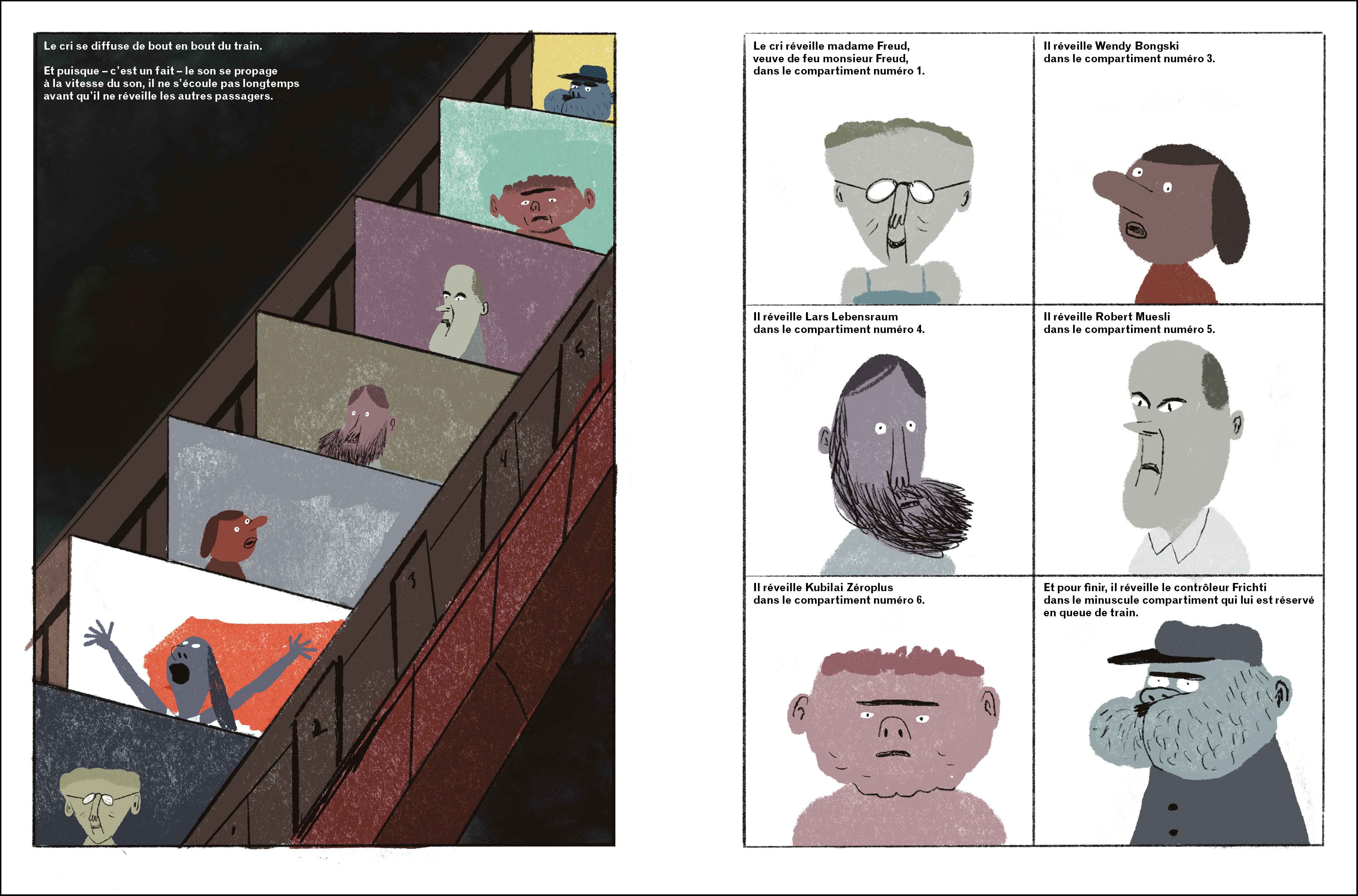 Avec un titre comme Qui a posé ses fesses sur le fromage du roi ?, nous ne pouvions que nous attendre à une histoire des plus loufoques. Quel drame à bord du train : un ou une malotrus a osé poser son fessier sur le soi-disant meilleur fromage du monde tant attendu par les royales papilles de sa seigneurie. Pour retrouver le coupable et résoudre cette enquête, il ne reste qu’une seule chose à faire : appeler le meilleur détective du royaume. Oubliez les interrogatoires interminables et les empreintes digitales, place aux interrogatoires décalés et aux empreintes fessières ! Surprenant ? Je vous l’accorde. Mais cela fonctionne car le détective Fluffenberg ne tardera pas à trouver le coupable ! Un album en total décalage, tant par le dessin que par l’histoire. Les illustrations sous forme de BD et présentées en chapitres permettent de montrer les étapes de l'enquête et de faire durer le suspense. Fous rires en famille garantis.